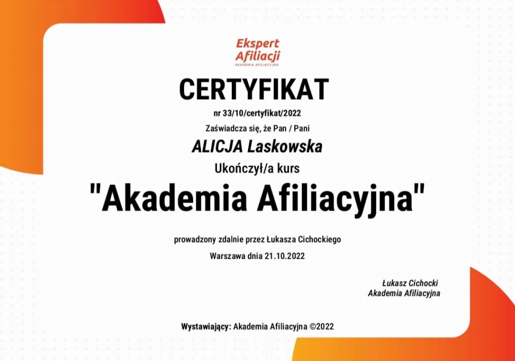 Certyfikat ukończenia Akademii Afiliacyjnej